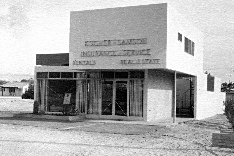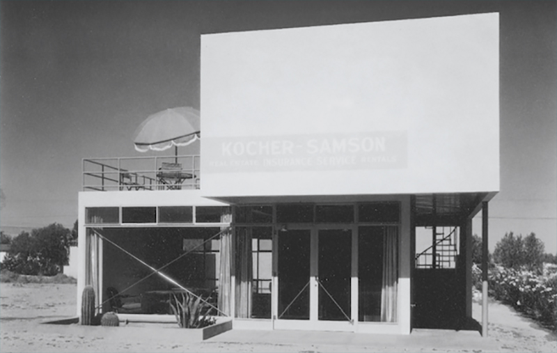 Another of their significant commissions, their first in Palm Springs, is known as Frey’s Kocher-Samson Building, an office/apartment dual-use building for Kocher’s brother, Dr. J. J. Kocher of Palm Springs, and built in 1934. This was the history-making project that both introduced Frey to the California desert, which was to become his home and backdrop for most of his subsequent work, as well as introduced Palm Springs to the Desert Modernist Style which defines it to this day. This may make the Kocher-Samson Building the most important building in Palm Springs and probably the most written about and studied.