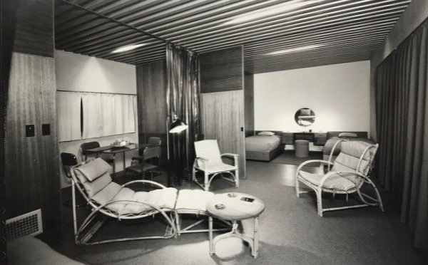 In America, Frey partnered with New York architect A. Lawrence Kocher. Though they designed and built only 4 buildings together, they created an American Modernist Movement. One collaboration was the 1931 Aluminaire House, designed for the Grand Central Palace Exhibition, and shown again at the Architectural League of New York’s show, sponsored by the Museum of Modern Art (MOMA). The 3 story house was built in 10 days out of donated materials and was the first all-metal house in the U.S.. The show became the basis for the book “The International Style”, by Philip Johnson and Henry Russell Hitchcock and was the manifesto for the International Style of architecture. In 2017 it was shipped in pieces to Palm Springs, where it will be reassembled in the new plaza space in front of the Palm Springs Art Museum.